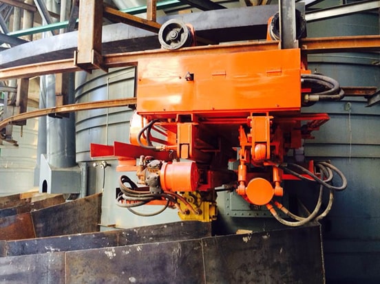 懸掛式開堵眼機安裝現場,國內首創(chuàng)的軌道式全液壓開堵眼機,非常適合16500-33000kva中大小型礦熱電爐使用。...